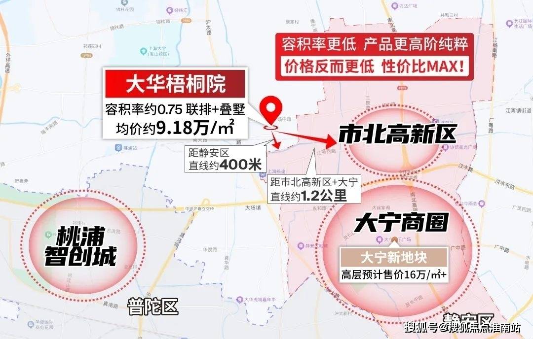 大华梧桐院位于宝山、静安、普陀的核心交汇处,南临静安大融城、大宁板块,向西是桃浦智创城,东侧是市北高新区。