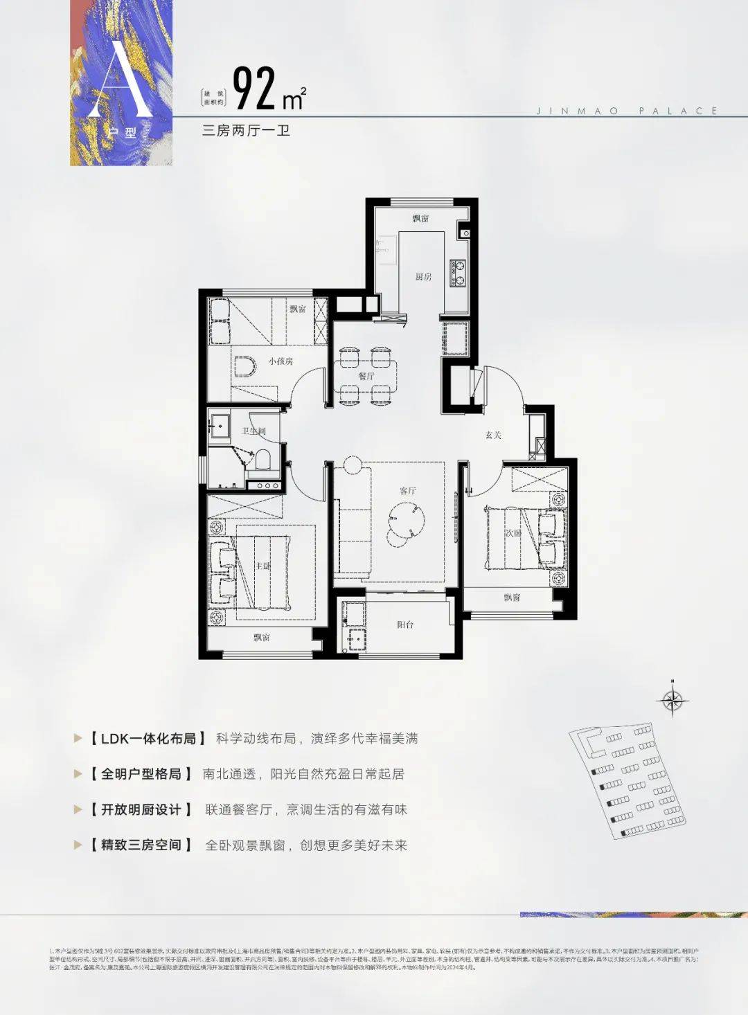 建面约100㎡3房2厅2卫户型☑️☑️张江金茂府售楼处电线☑️☑️此户型比较适合三口之家或三代同堂居住,户型空间尺度感十足!超大面宽阳台更大化接触阳光,居住舒适度拉满!