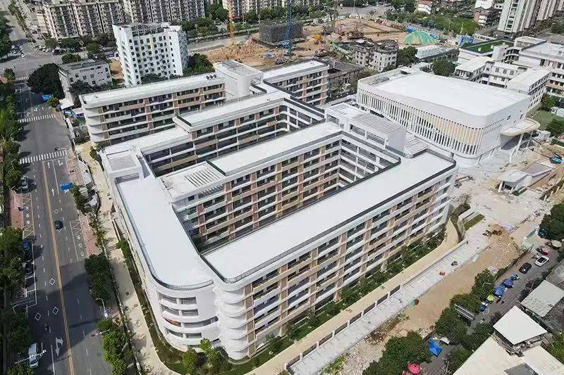 福州第十九中学滨海校区一期项目位于福州滨海新城万新路南侧、湖文路北侧,用地面积43514平方米,总建筑面积46729.14平方米,规划54个初中班。学校统一规划,分期建设,其中:一期项目建筑面积4.15万平方米于2022年5月27日开工,2025年8月20日竣工,2025年秋季学期投入使用。