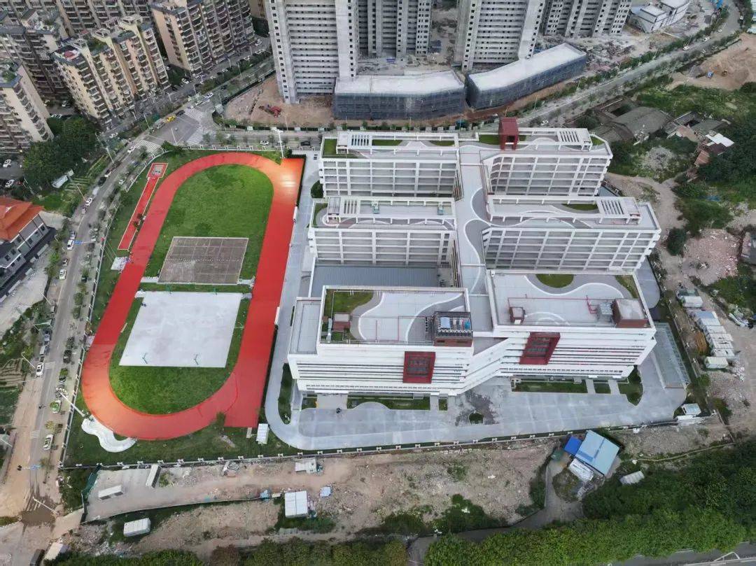 闽侯县首邑实验学校是一所涵盖初中部、小学部、幼儿园三个学段的一贯制学校,学校总建筑面积6.7万平方米,办学规模为初中24个班、小学48个班、幼儿园18个班,可提供3900个学位,将极大满足县城新增学位需求。校园以白色、鹅黄色为主色调,连廊串联各功能区,配备国标护眼灯、手摇升降桌椅,规划有全县首个双层风雨运动场,150间教师周转房为教师消除后顾之忧。