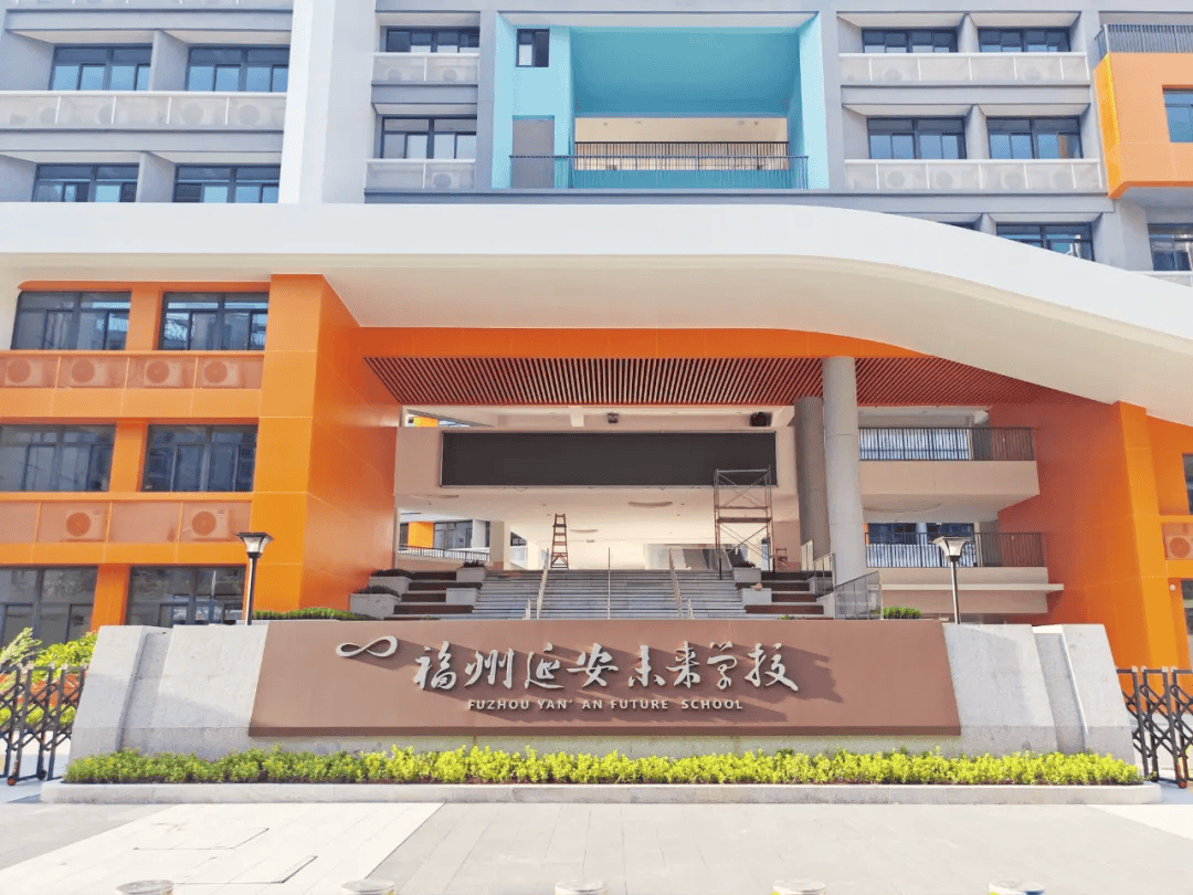福州延安未来学校作为鼓楼区新建的九年一贯制学校,设54个教学班,新增2430个学位。学校占地21968平方米,建筑面积30361.6平方米,橙白灰相间的建筑群简洁大气。田径场嵌入“海绵城市”生态层,公共空间去中心化,为学生提供了灵活的学习交流场所。