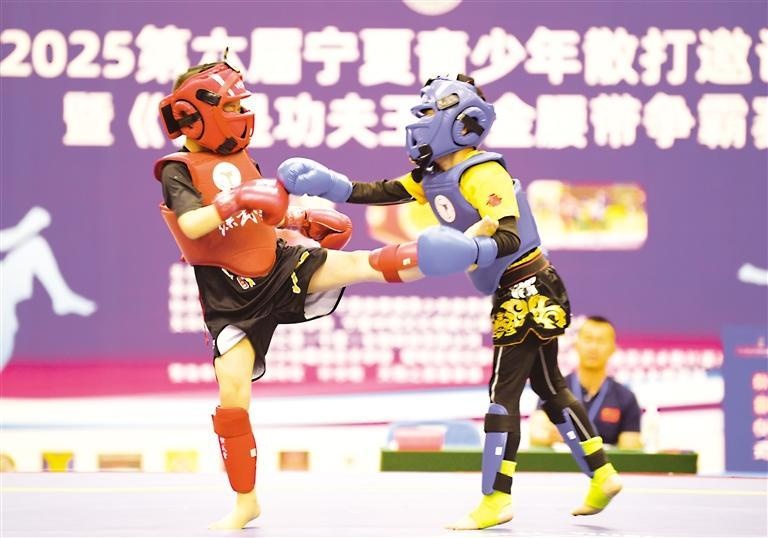 5月1日至2日,“塞上江南·运动宁夏”2025年第六届宁夏青少年散打邀请赛暨“我是功夫王”金腰带争霸赛在宁夏体育馆举行。(记者高晓刚摄)