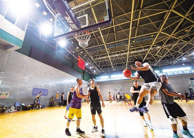 5月1日早晨,宁夏体育馆篮球场内市民们带球突破、奋力拼抢,点燃运动激情。为丰富市民文化生活,银川众多体育场馆在“五一”期间推出免费开放惠民政策,吸引了众多运动爱好者。(记者马楠摄)