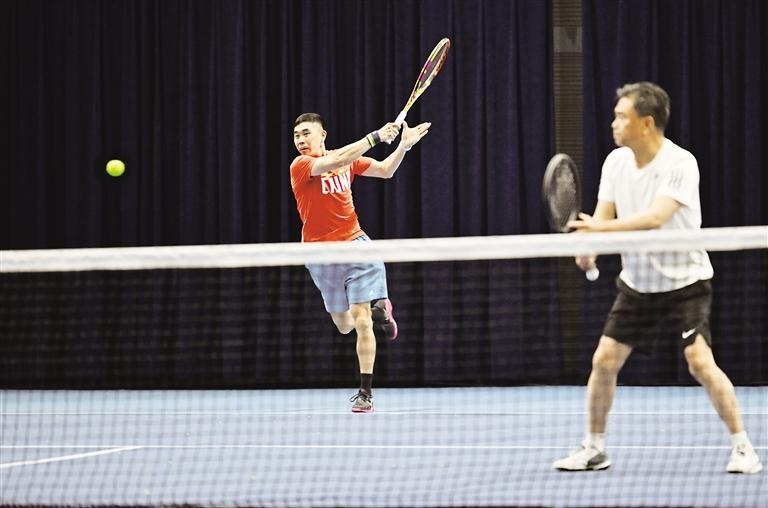 5月2日,“宁夏——内蒙古网球交流赛”在宁夏亲水体育馆挥拍开打。“五一”期间,“体育+旅游”模式受到人们青睐。(记者左鸣远摄)