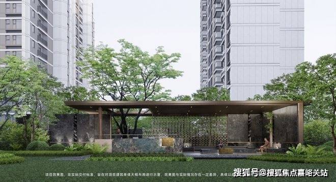 还能在归家的动线上体会到不同的景观节点:境隐门开(主入口空间)、悬廊叠瀑(水岸会客厅)、绿野拾趣(儿童乐园)、轻舞晓影(乐享氧吧)、樾下茶庭(宅前花园)、花香漫语(宅前会客花园)、轻氧花园(全龄活动区)。
