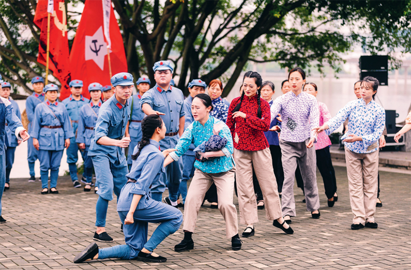 “红旗飘,军号响,子弟兵,别故乡”,“红军主力上征途,战略转移去远方”……在江西省赣州市于都县,当年红军长征出发的渡口,情景剧《告别》生动再现了于都河畔母送子、妻送郎、舍下孩子上战场的场景。这支大部分由红军后代组成的公益团队,2021年5月至今常态化演出已有600多场,用自己特殊的方式弘扬长征精神、传承红色基因。图为2025年拍摄的情景剧《告别》演出现场。 江西省委宣传部供图
