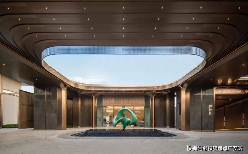 整座大堂外墙采用伯爵灰大理石满铺高墙,电动门镶嵌宝格绿奢石,实现无感通行;