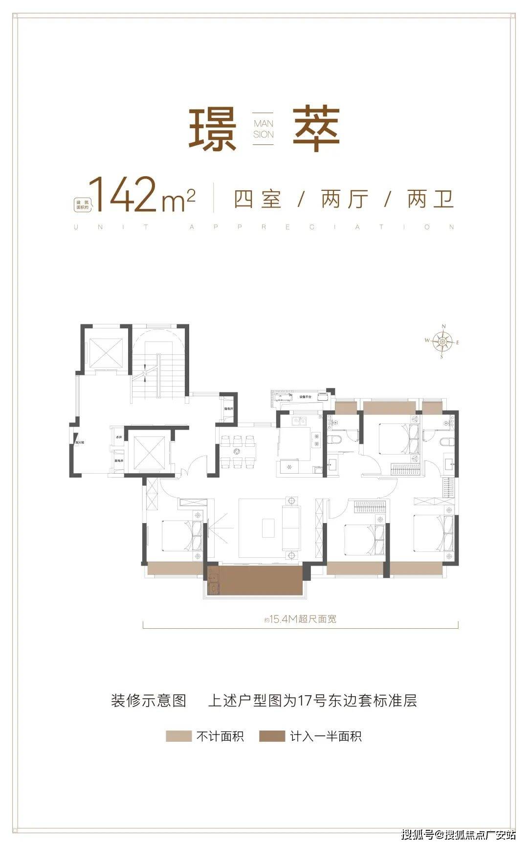 这个户型拥有一个“好户型”的所有特质,上车必看的首选户型!建面约142㎡类一梯一户顶奢4房:
