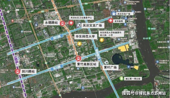 地块所在的紫竹区域占据浦江上游第一湾独特地理位置,核心区域有闵行第一大湖兰香湖,水域面积广阔,岸线绵延,湖光潋滟。