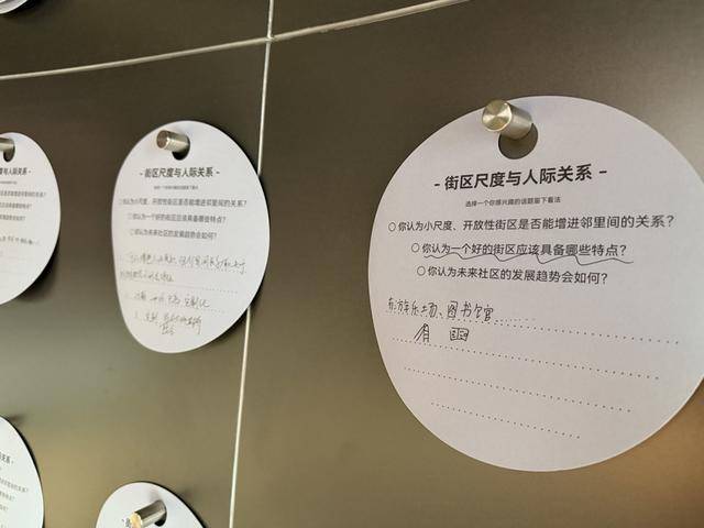 从乡土植物到二十四节气植物、香草植物,理想之地化身为一座立体、多维的“生境花园”。“你认为好的街区应该具备哪些特点?”“它应该是友好、共创、同频的社交型社区。”“有游乐场、图书馆!”“人性化、便利性、创新性。”……在互动区域,参观者纷纷写下他们对社区街区等城市空间的看法。