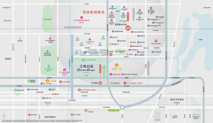 2轴相绕(苏州北站高架路、中环北线号线号线)快速通达园区及市区,畅行苏州生活圈。