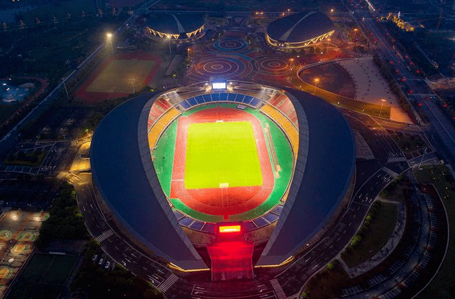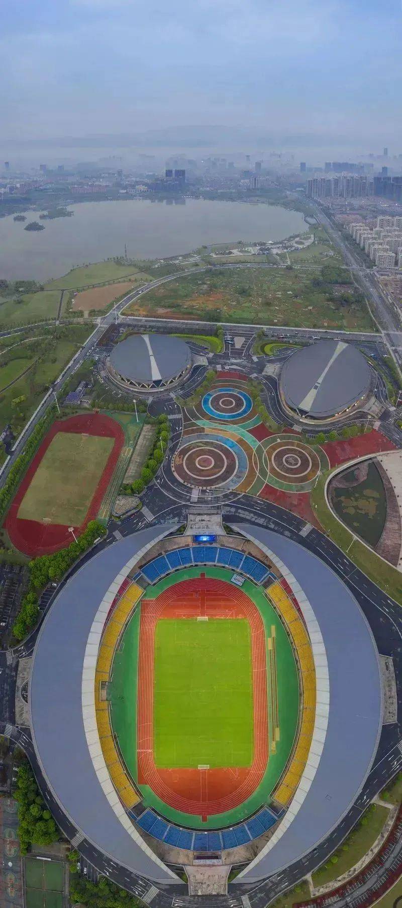 建筑面积约44064平方米,拥有3万座观众席,其设计取“燕跃鹄踊”之立意。通过国际足联专业检测认证,可以举办国际任何最高级别赛事,是杭州亚运会第一片国际检测及国标一级检测双达标的场地。