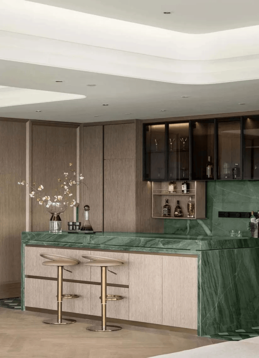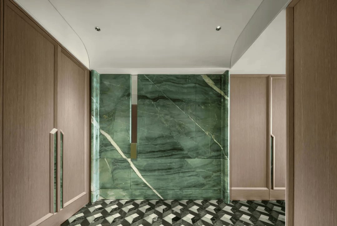位于那套单价7.9万元的房源楼下,与杭州中心5000万级的顶流豪宅一脉相承。延续了杭州中心最受欢迎的青玉风格,重新打造升级版,选用了奢石第一梯队的百达翡翠,单方造价达到9000元/㎡。搭配温润细腻的木饰面,将平静的高级感融入其中。瑞玺约