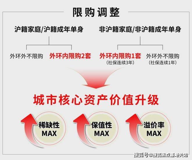 调减住房限购政策:符合本市住房购买条件的居民家庭,包括本市户籍居民家庭、在本市连续缴纳社会保险或个人所得税满 1 年及以上的非本市户籍居民家庭,在外环外购买新建商品住房不限套数。成年单身人士按照居民家庭执行住房限购政策,即沪籍成年单身人士在外环外购买住房不限套数,在外环内限购 2 套住房;非沪籍成年单身人士,自购房之日前在本市连续缴纳社会保险或个人所得税满 1 年及以上的,在外环外购买住房不限套数,满 3 年及以上的,在外环内限购 1 套住房。