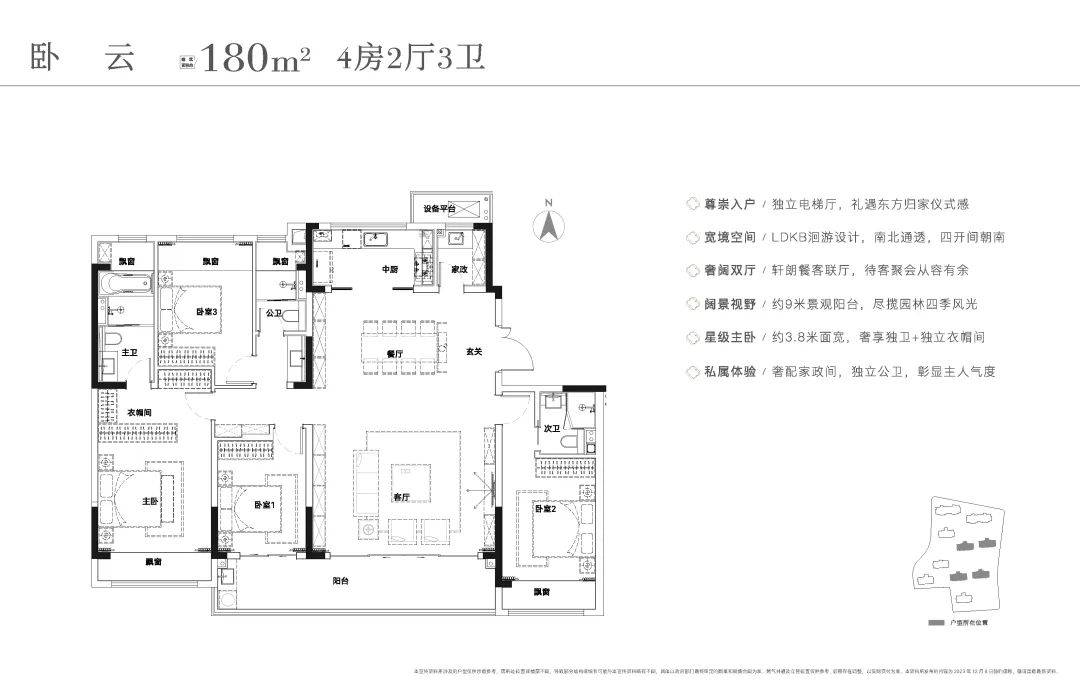 :建面约143㎡、163㎡、180㎡,均为4室2厅设计(143㎡为2卫,163㎡/180㎡为3卫)