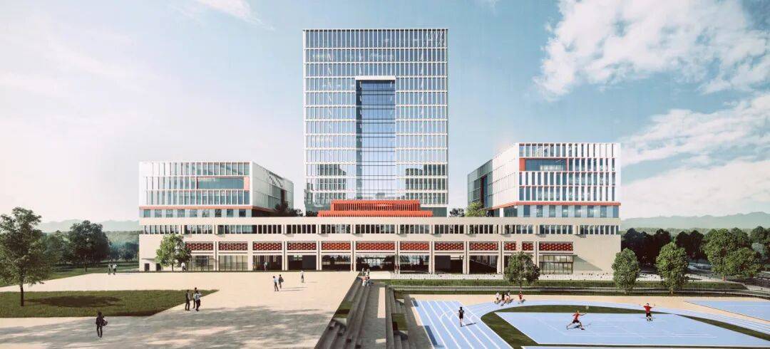 校园占地面积94.35亩,设计完中60班(初中18个班,高中42个班),总建筑面积10.35万平方米。