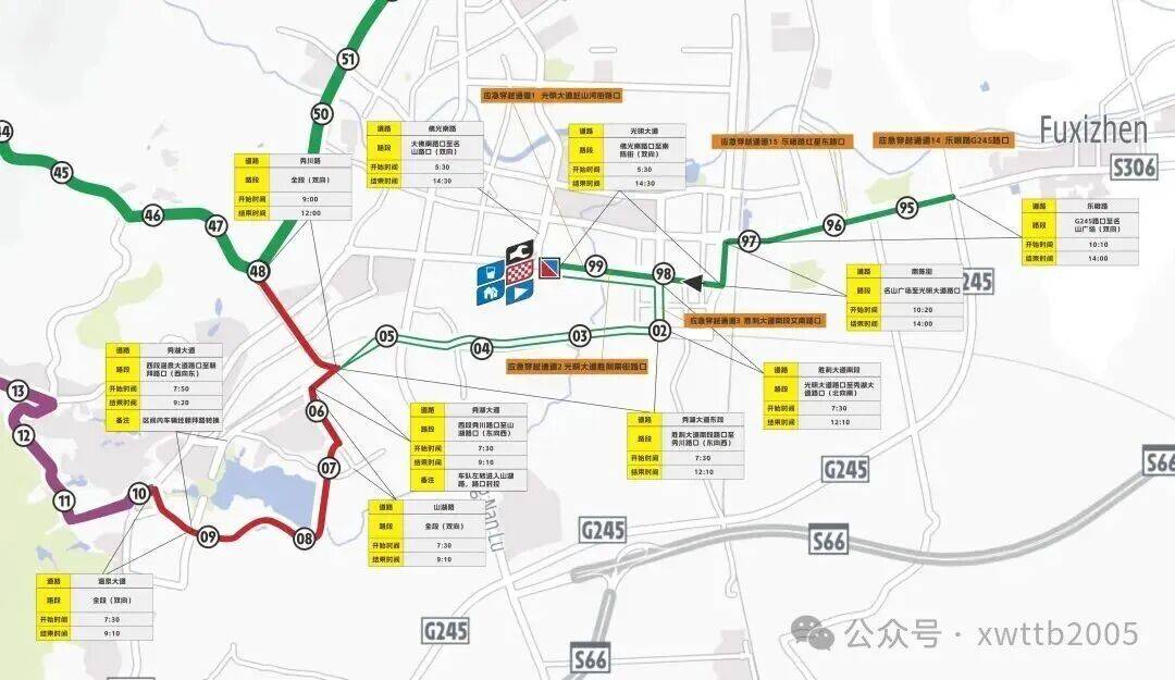 交通管制期间,将联动地图导航服务商发布管制路段实时路况和绕行路线,请按导航提示信息通行。