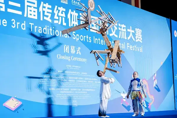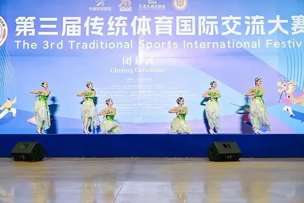 第三届传统体育国际交流大赛既是一场精彩的体育赛事,更是一场中华文化交流盛宴。比赛过程中,组委会不仅于大赛期间组织了各类文化探访活动,更在闭幕式上安排了民乐歌舞、非遗杂技等特色表演,让参赛运动员们在审美观赏之余,感受中华传统文化的博大精深。