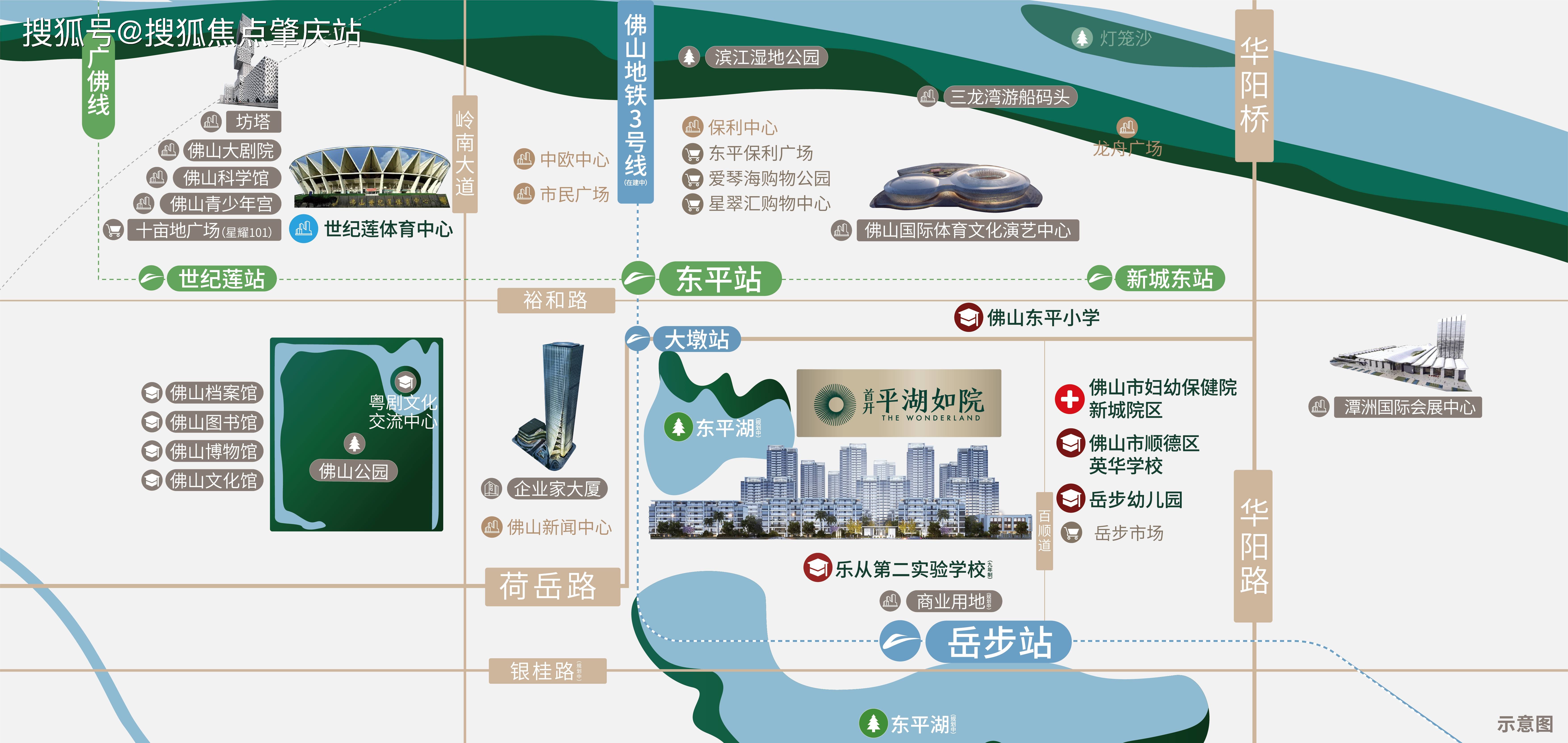 文化配套:世纪莲体育中心,佛山大剧院,佛山国际体育文化演艺中心,潭洲国际会展中心三龙湾夜游码头……