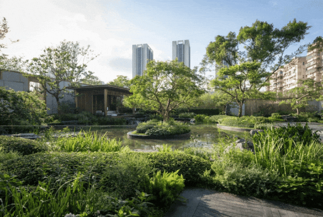 保利燕语堂悦的产品,一直是“教科书”级别的存在。例如,不同于海珠大部分项目的小体量,项目在寸土寸金的海珠西,拥有约12万方的体量,做到了一二期均标配围合式社区。这也让燕语堂悦拥有其它项目不具备的空间,精心打造出海珠首个新中式东方美学园林,并且在开盘前就完成兑现。