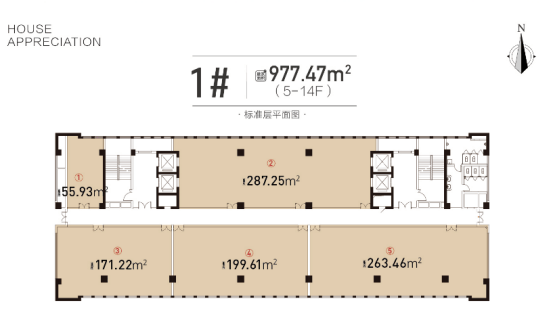 总规划项目的主体为两栋现代高层商务办公大楼,干挂石材立面,一号楼地上 21 层,二号楼地上 19 层,地 下 2 层。标准层层高均为3.8米,1 号楼每层设计面积 977 ㎡, 二号楼每层设计面积 1280㎡。均配置三星中央空调,以及新风系统,匠心营造健康商务空间。