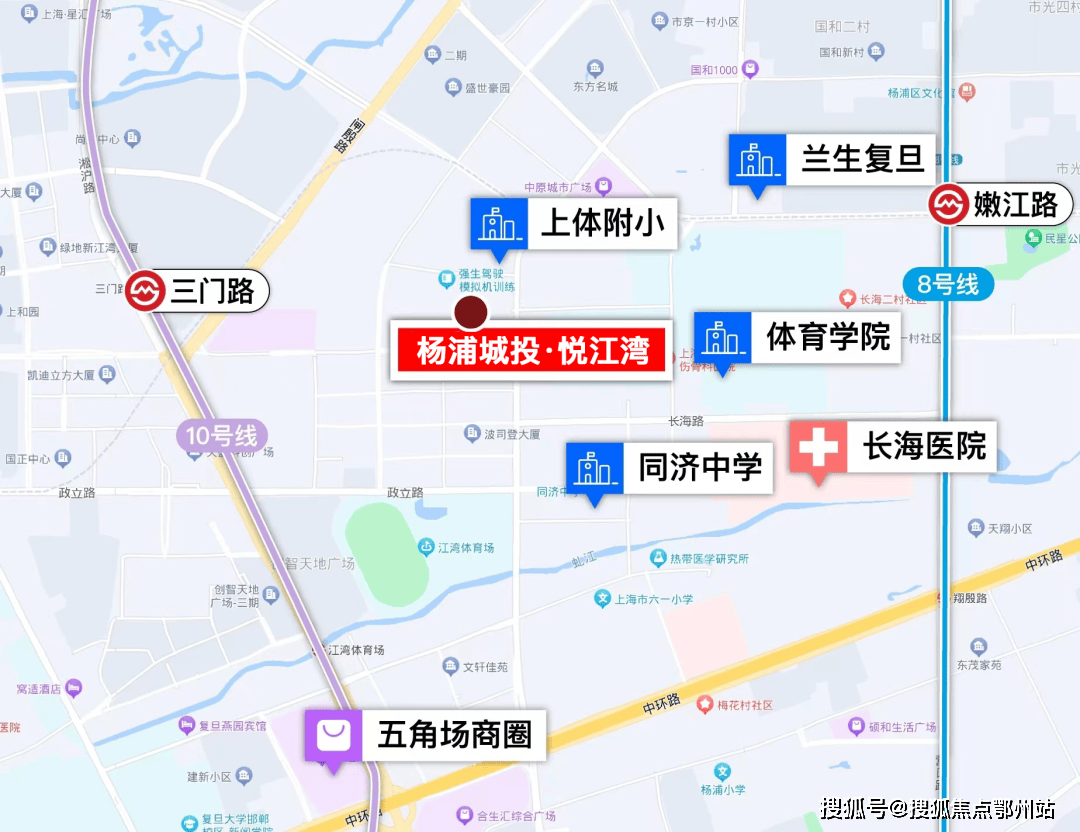等商业,长海医院、东方肝胆外科医院、肺科医院等三甲医院。项目南侧不远处是市级商业中心的五角场,北侧是生态环境优越的新江湾城,生态资源、高能级配套一手掌握。