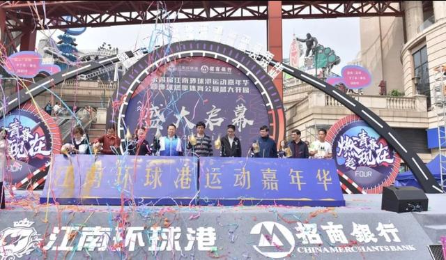 5月1日上午,招商银行第四届江南环球港运动嘉年华暨环球燃擎体育公园开园仪式在江南环球港圆满举行。