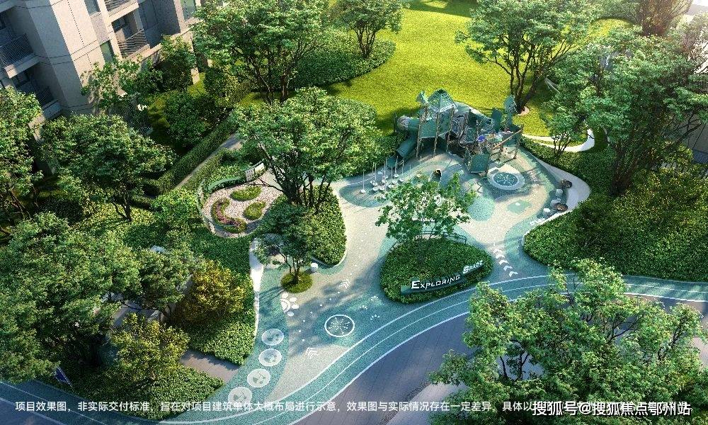 境隐门开(主入口空间)、悬廊叠瀑(水岸会客厅)、绿野拾趣(儿童乐园)、轻舞晓影(乐享氧吧)、樾下茶庭(宅前花园)、花香漫语(宅前会客花园)、轻氧花园(全龄活动区)。