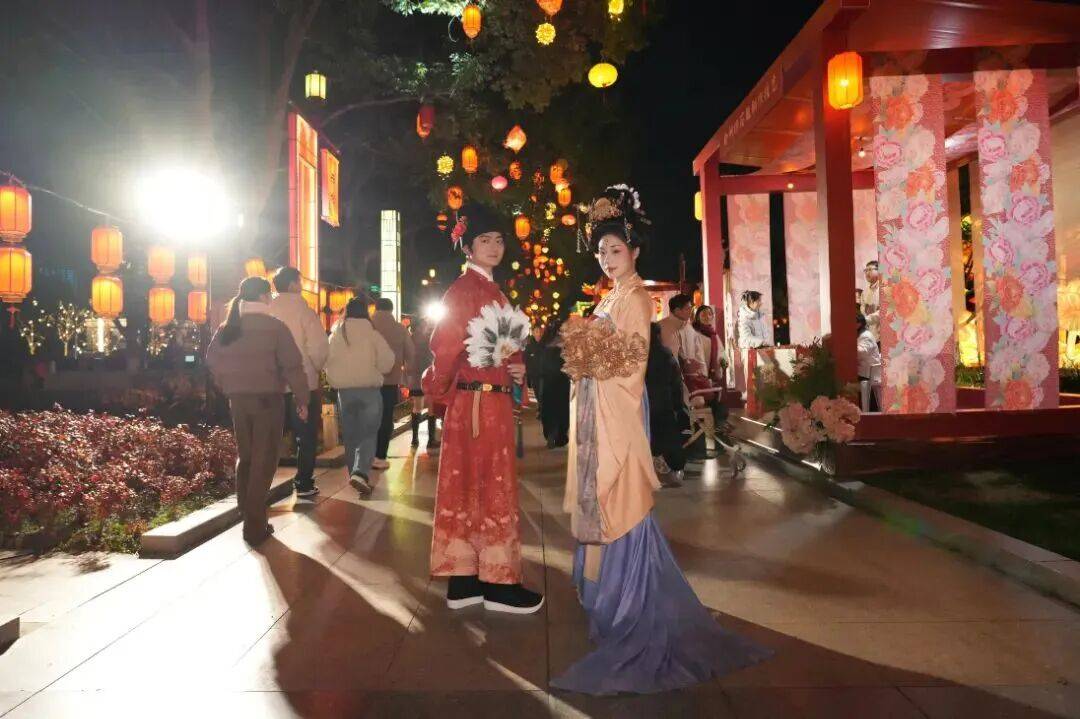 正月十四、十五的晚间,桐庐中心广场依旧有《国色芳华》沉浸式互动巡游,热闹氛围不打烊,让欢乐持续在线